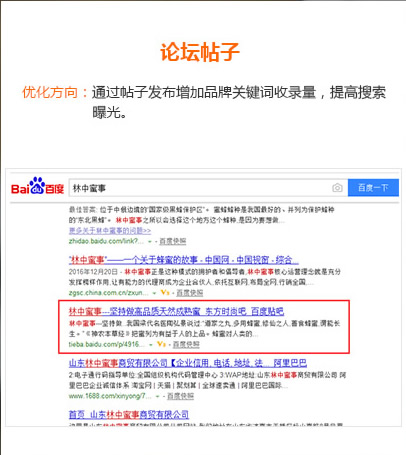 用户搜索指定关键词时,百度网页搜索结果中出现与品牌相关的第三方平台网友分享内容(百度知道、豆瓣、天涯问答等)